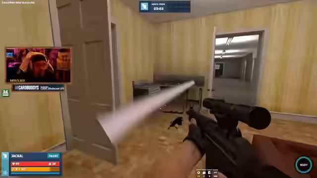 05:27:40Ein hektisches Feuergefecht entbrennt, bei dem mehrere Spieler involviert sind und einander beschuldigen, zu schießen. Walui wird für einen geglückten Angriff auf zwei Spieler gelobt, während Sneggy beschuldigt wird, auf den Streamer geschossen zu haben, was zu einer Gegenreaktion führte. Auch Maggie gerät ins Kreuzfeuer und wird beschossen, was zu einer hitzigen Diskussion darüber führt, wer den ersten Schuss abgab und wer als Bösewicht gilt. Spieler bewegen sich strategisch und nutzen die Umgebung, um zu überleben und Angriffe abzuwehren.