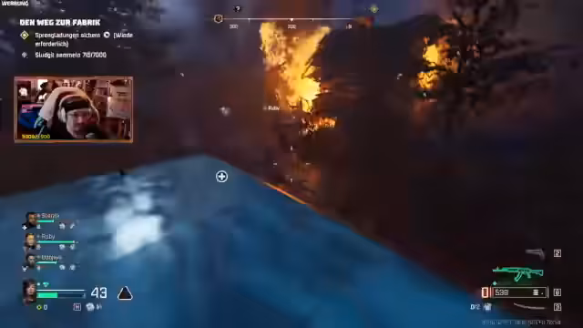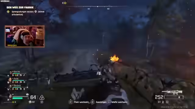 04:09:47Das Stream-Team beginnt mit einem Gefecht gegen feindliche Fernkampfeinheiten. Der Streamer sucht aktiv nach Ersatzteilen und Loot, was ihn an ein verlassenes Haus führt. Dort wird er jedoch von einem starken Gegner überrascht und niedergestreckt, weshalb seine Teamkameraden ihm sofort beistehen und ihn wiederbeleben. Während der Erkundung wird die besondere Umgebung mit matschigem Boden, der Spuren hinterlässt, hervorgehoben, was für einen realistischen Erlebnis sorgt.