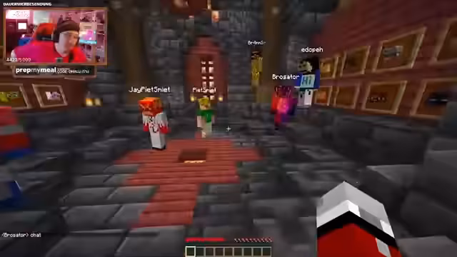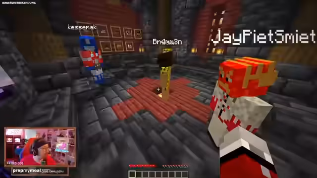 07:31:55Während der Map sich verkleinert, ziehen alle Spieler in die Mitte, wo der beste Loot und die intensivsten Kämpfe erwartet werden. Der Streamer erkennt, dass er gut ausgerüstet ist, und mischt sich in die Kämpfe ein. Es kommt zu strategischen Duellen, dem Einsatz von Fallen, von Tränken und von speziellen Items wie Enderperlen zum Teleportieren. Ein zentraler Kampf entsteht, in dem die Spieler Peter und Jay um die Vormachtstellung in der Mitte ringen und versuchen, sich gegenseitig in tödliche Fallen wie Lava oder Pulverschnee zu locken.