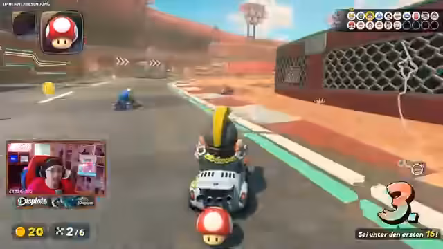 01:54:32In diesem Abschnitt wird intensiv über Gameplay-Strategien in Mario Kart 8 Deluxe diskutiert. Es geht um die Nutzung von Items wie Raketen und Pilzen sowie die Vor- und Nachteile von Abkürzungen. Der Streamer betont, dass diese Abkürzung, die durch Wasser führt, eine gute Strategie ist, auch wenn sie nicht immer Zeit spart. Zudem wird eine Abkürzung auf der Strecke 'Salzwasser Serpentin' getestet, die nicht ohne Weiteres im Rennen genutzt werden kann und zu technischen Problemen führt, was eine Schranke auslöst. Die Runde endet mit einem Treffer durch den Blitz, der den Streamer behindert und ihn auf den Kopf springen lässt, was keinen Boost, sondern einen Verlangsamerungseffekt verursacht.