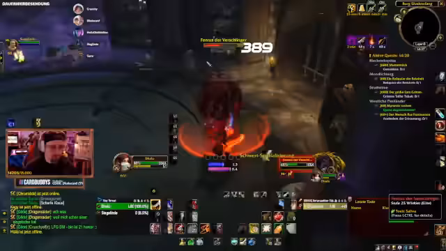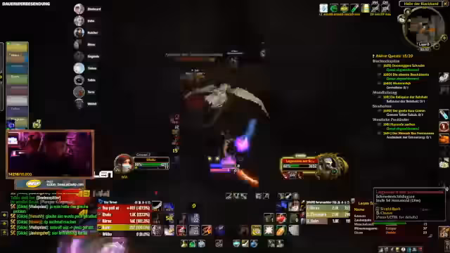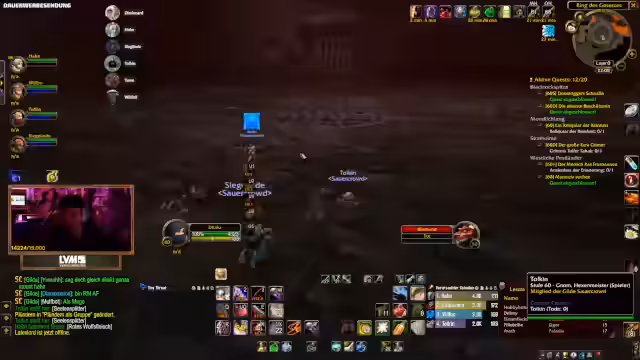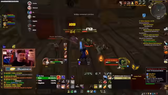 08:51:45Im weiteren Verlauf des Streams startete ein geplantes Arena-Event im Dungeon, bei dem Wellen von Gegnern abgewehrt werden mussten. Dies führte zu dynamischen Bosskämpfen, darunter einem Kampf gegen Lord Victor Nefarius. Es wurden spezifische Taktiken besprochen, wie man den Cleave und Drachenatem des Bosses meidet. Der Sprecher gab präzise Anweisungen zur Positionierung und zu den Fähigkeiten der Gruppe, während gleichzeitig der Loot, wie die Black Hand Verdammnessäge, diskutiert wurde.