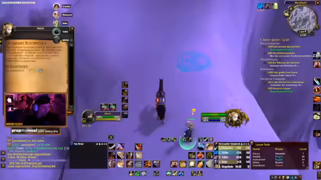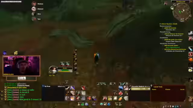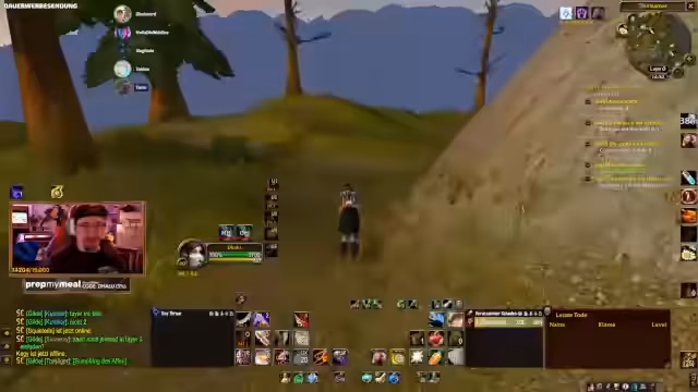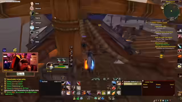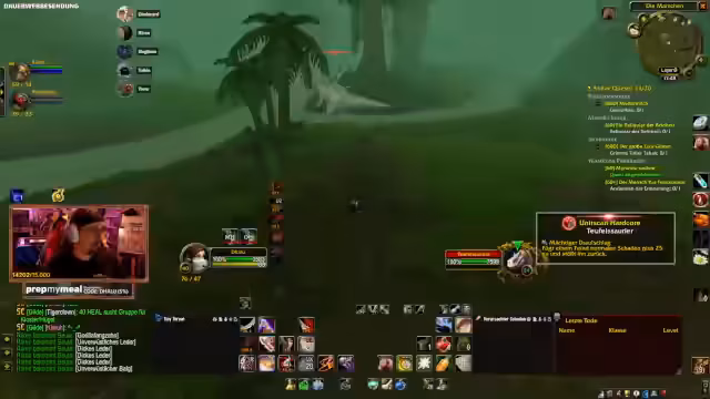 06:47:45Toro ist dicht daran, Level 60 zu erreichen, benötigt aber noch die letzten XP-Punkte. Ein seltener Mob, der Blutblütendrescher, wird als Ziel identifiziert, der viele XP droppt. Es kommt zu einem turbulenten Kampf, bei dem Toro den Mob mit viel Glück knapp tötet, aber die XP-Benachrichtigung ausbleibt. Ein weiterer Versuch scheitert, was zu massiver Frustration führt, während die Gilde ihm Glückwünsche schreibt, ohne den Grund zu kennen.