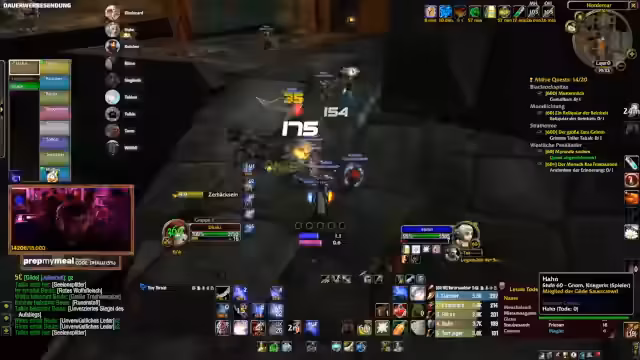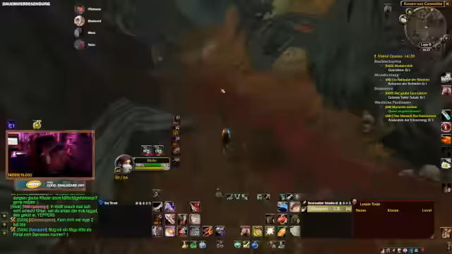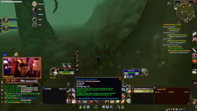 10:42:40Ein zentrales, humorvolles Ereignis war das 'Brechen des Fluchs' durch den Streamer. Nach mehreren Toden in der Gruppe, bei denen der Streamer Items verschenkte, die direkt darauf gedroppt waren, wurde der Fluch letztendlich überlebt, was zu großer Freude im Chat führte. Ein weiteres Problem war das automatische 'Gier'-Looten durch ein Addon, das das manuelle Verteilen von Items erschwerte, was zu Frustration und der Notwendigkeit führte, das Looten manisch zu kontrollieren.