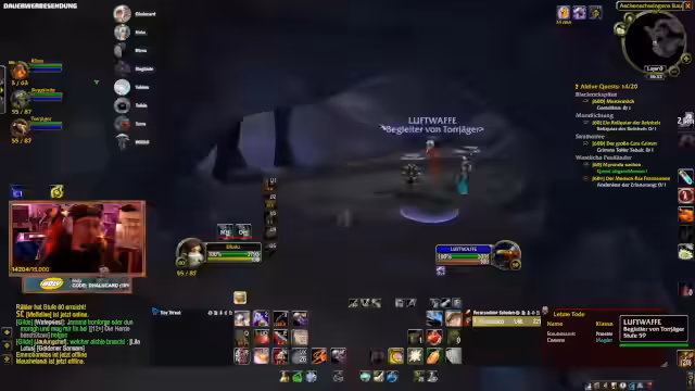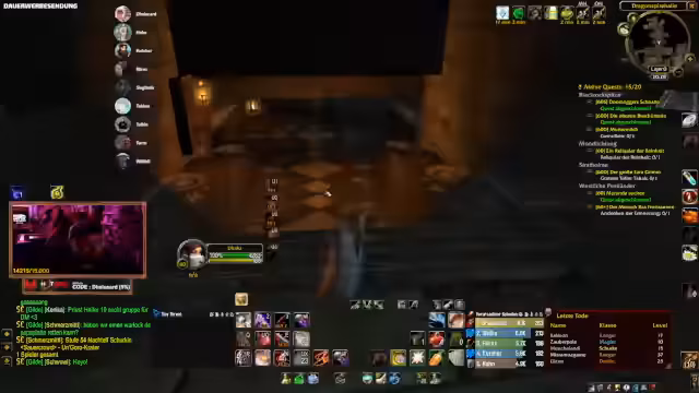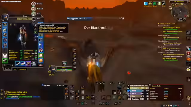 06:57:38Nach einem langen und nervenaufreibenden Grind erreicht Toro endlich Level 60. Die Stimmung im Chat ist euphorisch, und die Gilde gratuliert ihm reichlich. Gleichzeitig wird der Plan für die nächste Mission festgelegt: Der Weg nach Dustwallow Marsh, um die Drachen-Schlüsselquest abzuschließen. Es gibt Uneinigkeit über die Beteiligten und die strategische Vorgehensweise, und der Streit mit Ryrex über die fehlende Unterstützung für den Schlüssel ist noch nicht ausgestanden.