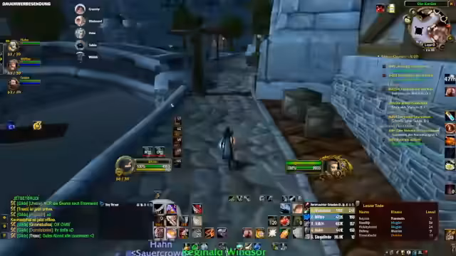 12:14:04Ein großes, lore-lastiges Event wird eingeleitet. Die Gruppe befreit Marshall Windsor aus dem Gefängnis in Stormwind. Es kommt zu einem langen RP-Walk durch die Stadt, der das Ganze episch gestaltet. Nach der Befreiung gibt es eine beeindruckende Lore-Erklärung zu den Verstrickungen im Königshaus, die die Story vorantreibt.