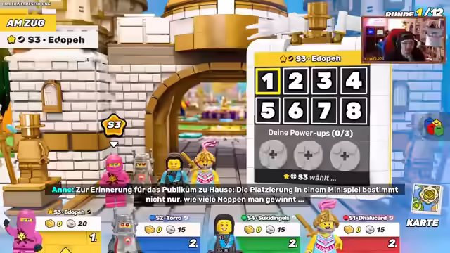 06:29:20Es wird diskutiert, dass es im Spiel keine Bonussterne am Ende gibt, was bedeutet, dass Minispiele und Gewinnen nicht so relevant sind. Das Spiel, bei dem man am meisten Fläche in seiner Farbe hat, wird als das schlechteste Partyspiel bezeichnet, da man einfach hinterherlaufen kann. Es wird vorgeschlagen, dass man sich gegenseitig schlagen oder ausrutschen lassen könnte. Es wird überlegt, Power-Ups einzusetzen. Es wird festgestellt, dass die Power-Ups immer bei einer bestimmten Person spawnen. Es wird angemerkt, dass ein Match nicht so ewig dauert und man es zwischendurch mal einwerfen kann. Es wird festgestellt, dass man mehr Zeit auf dem Spielfeld als in den Spielen selbst verbringt. Es wird der Wunsch geäußert, einen Power-Up zu benutzen. Es wird überlegt, ob man Schluckhaus oder Langterextreme wählen soll. Es wird festgestellt, dass goldene Steine verteilt werden und es schon schön gemacht ist. Es wird überlegt, wo man langgehen soll. Es wird erwähnt, dass die Hälfte geschafft ist und es höhere Verluste und Prämien für die Minispiele gibt.