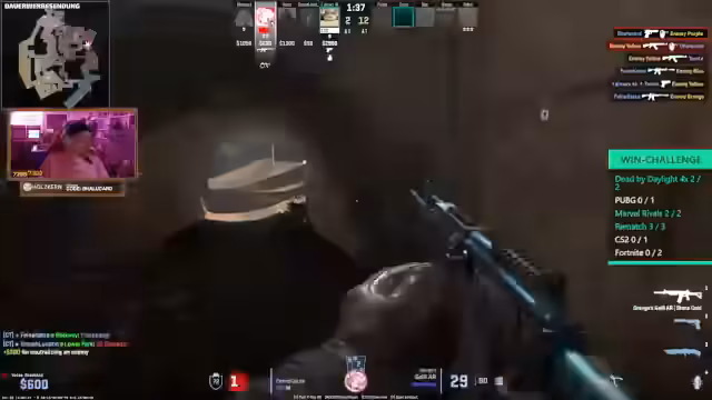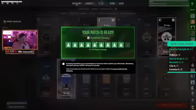 05:09:38Der Streamer beschließt, anstatt PUBG, Counter-Strike zu spielen. Er gibt zu, dass er in CS sehr schlecht ist und nicht trollt, sondern es ernst meint. Er beklagt, dass die meisten Tode durch sofortige Kopfschüsse resultieren und somit das Glück eine große Rolle spielt. Seine Leistung in anderen Spielen wie Rematch wird ebenfalls kritisch gesehen.