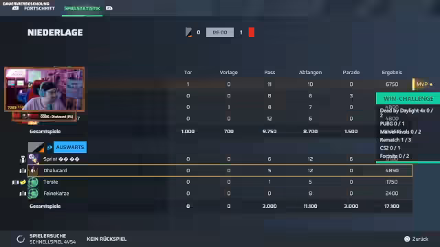 00:04:14Die Streamer planen ihre sogenannte Win-Challenge und überlegen, welche Spiele sie spielen möchten. PUBG und Rematch stehen bereits fest. Es wird über die Spielzeiten und die Dauer der Sessions gesprochen, wobei Terste Bedenken hat, die Challenge in der Woche durchziehen zu müssen. Auch Battlefield 6 und CS:GO werden als mögliche Spiele genannt, wobei es auch um die Teilnahme eines fünften Spielers für CS:GO geht.