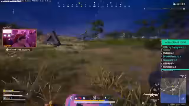 08:00:01Innerhalb der Challenge kommt es zu einer Diskussion über die individuellen Fähigkeiten der Teilnehmer in PUBG. Asics hält sich für einen besseren Shooter als Terste, während Terste mehr Erfahrung in PUBG besitzt. Die Rangliste der Skills von PUBG wird aufgestellt, mit Terste auf Platz eins, gefolgt von Asics, Smeggy und Clure. Parallel dazu werden laufende PUBG-Runden gespielt, in denen das Team strategisch vorgeht, Gegner aufspürt und in Feuergefechten verwickelt wird. Die Situation ist oft hektisch, da Gegner aus unvorhergesehener Richtung angreifen und das Team schnell reagieren muss, um nicht eliminiert zu werden. Es werden Taktiken wie das Nutzen von Rauchbomben und das Anvisieren von Gegnern mit unterschiedlichen Waffen besprochen.