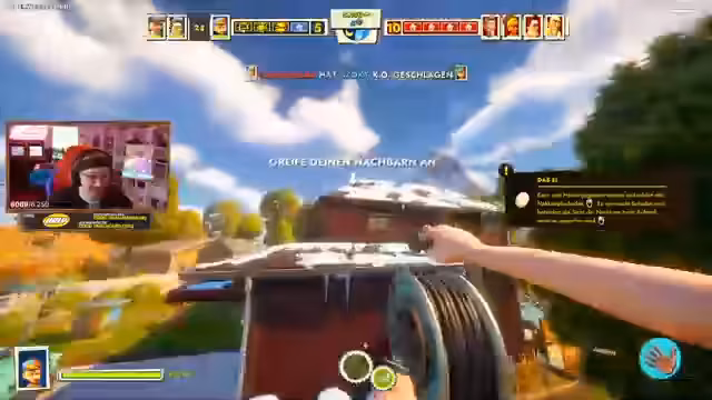 00:59:57Die Strategie, Turrets aufzustellen und sich die ganze Zeit rüber zu schießen, wird als verrückt, aber effektiv beschrieben. Trotzdem wird betont, dass das Team fast gewonnen hätte, obwohl drei Spieler die erste Runde spielten. Der Streamer wählt die Oma als Charakter und probiert den Raketenwerfer aus. Es wird überlegt, ob man die Schnee-Map oder eine andere wählen soll. Der Streamer entscheidet sich wieder für die Doreen und betont die Wichtigkeit von Brettern. Ein Kevin kommt durch und es wird festgestellt, dass es verschiedene Arten von Holz gibt, wobei eines für den Kamin ist. Es bleiben noch 29 Sekunden, bis man auf die Baustelle muss. Der Streamer baut bei der Baustelle und wird von drei Gegnern attackiert. Er wird vom Staubsauger-Mann umgeboxt, der als stark empfunden wird. Der Staubsauger-Typ ist immer noch low und wirft Dynamit. Es kommt zu Mikro-Legs und Standbildern. Der Streamer boxt um die zwei Idioten und wird umgefahren. Er gibt einen Knockout und einen Double-Kill. Es wird diskutiert, wo man Ressourcen bestellen kann. Der Streamer nimmt eine geheimnisvolle Kiste und findet einen Kuchen, der heilt. Die Oma wird weggehauen und es werden Ressourcen für T2 benötigt. Die Gegner landen am Zaun und der Streamer plant einen Drive-By-Truck. Ressourcen treffen an der Baustelle ein und der Streamer wird von Raketentypen gekitet. Er wirft Doraen die Mütze zu.