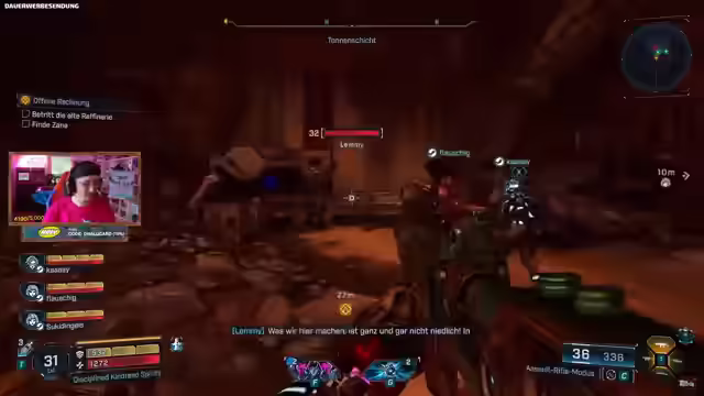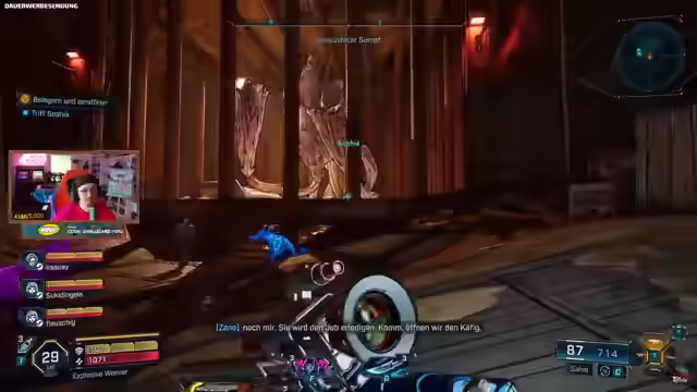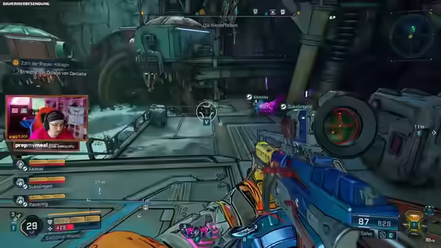 03:12:40Eine Achterbahn-ähnliche Struktur wird beschrieben, begleitet von Geisterbahn-Geräuschen. Der Streamer findet eine Waffe, die Spaß macht, mit einem großen Magazin und einfachem Linksklick-Schießen. Die Messer-Waffe wird als "geil" bezeichnet. Es wird diskutiert, warum Charaktere durch Wände fliegen, was auf unterschiedliche Positionen bei verschiedenen Spielern zurückgeführt wird. Der Streamer stellt sich vor, wie das Spiel für die Zuschauer wäre, wenn er Host wäre. Es wird festgestellt, dass die aktuellen Probleme unabhängig von der Internetverbindung sind. Nach dem Ziehen von Hebeln und Zerstören von Maschinen wird ein Bosskampf als nicht schwer empfunden, da er keine Einführung oder einen Splashscreen hatte. Der Streamer bemerkt, dass er nicht genug "Spacher" hat und erklärt, dass er das "CH" oft vergisst, was zu einem Counter geführt hat. Der Schneeabschnitt wurde bereits gemacht, und der Stampfer wird als nutzlos empfunden. Ein weiblicher Roboter wird erwähnt. Der Streamer findet es schade, dass man nichts von Claptrap gehört hat. Es kommt zu einem Spawnkill, der als "assi" bezeichnet wird. Ein Charakter sieht aus wie Lemmy, was zu Verwirrung führt. Der Streamer fragt sich, wo die tausenden Gegner sind, die angezeigt werden.