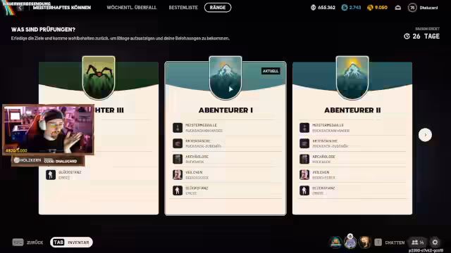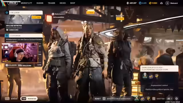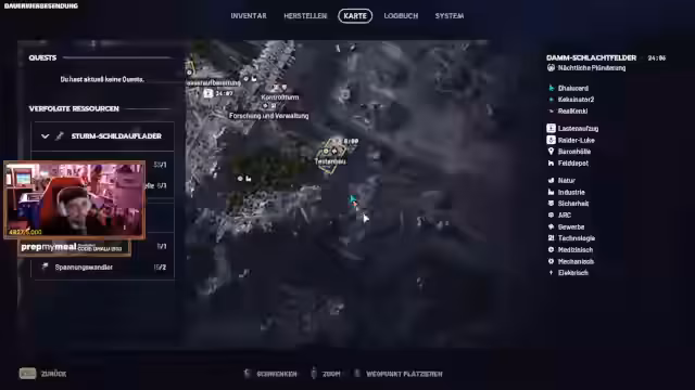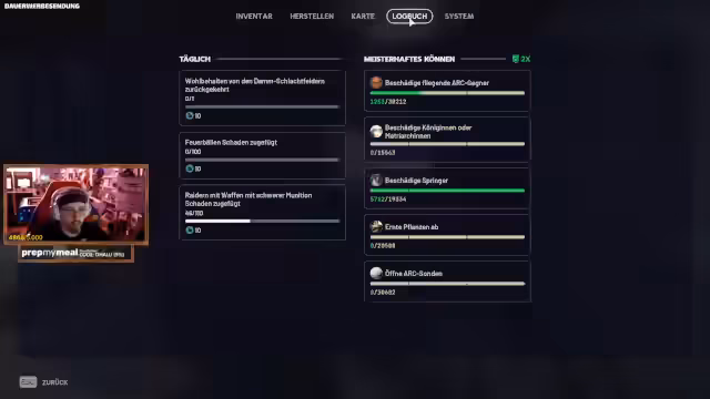 07:43:49Die Spieler sind aktuell stark mit den 'Weekly Challenges' beschäftigt, was Erklärungen im Stream erschwert. Es wird erwähnt, dass sie den höchsten Rang im Spiel ('Abenteurer 1') innehaben und noch in den Top 10 sind, aber die aktuellen Challenges als sehr schwierig empfunden werden, da 137.000 Punkte das Minimum sind und die Woche als 'scheiße' bezeichnet wird. Sie planen, auf das Dach von 'Damm' zu gehen, um Spinnen und Drohnen abzuschießen. Die Ausrüstung wird optimiert, wobei 'Jupiter' und 'Hullbreaker' für Spinnen und Drohnen eingesetzt werden sollen. Munition und Haltbarkeit der Waffen sind ein Problem, und es werden Ziplines benötigt, die aufgrund von fehlenden Seilen nicht gecraftet werden können. Die Spieler bereiten sich auf den Kampf vor, indem sie Barrikaden, Schockminen und Wolfpacks mitnehmen und die Strategie besprechen, wie sie sich auf dem Dach positionieren und Gegner abwehren wollen.