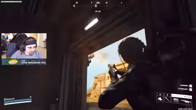 04:10:50Die LAN wird als Urlaub empfunden, wobei Streamen optional ist. Es freut sich auf Rematch und das WoW-Projekt. Ein Arc-Raiders-Skin wird gesucht, aber die Informationen sind vage. Monitor-Hertz wird diskutiert, wobei festgestellt wird, dass einige Streamer ihre Monitore nicht optimal konfiguriert haben. Setup-Probleme von Mitbewohnern werden aufgeklärt, wie ein falsch angeschlossenes Kabel bei Suki. Die Gruppe bereitet sich auf die PUBG-Runde vor und tauscht sich über Essen und Discord-Abläufe aus.
