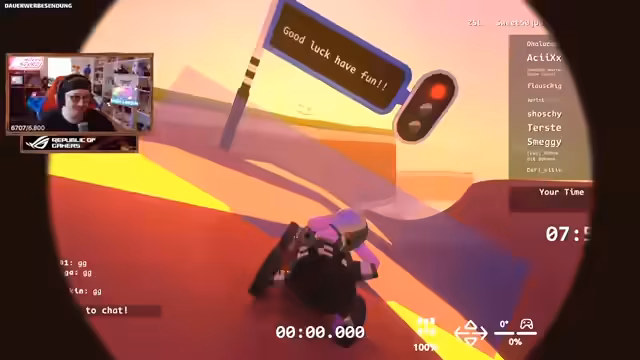 01:15:12Das Streamer-Team beschäftigt sich intensiv mit Zeitfahrten im Spiel Zeepkist. Es entstehen Rivalitäten und Wettbewerb, bei dem die Spieler gegeneinander antreten und versuchen, bessere Zeiten zu erzielen. Es kommt zu verbalen Auseinandersetzungen und Drohungen, wobei einige Spieler betonen, dass sie bestimmte Strecken nicht fahren werden, während andere die Herausforderung annehmen und ihre Zeiten verbessern möchten. Die Stimmung ist von Konkurrenz und Ehrgeiz geprägt, wobei einige Spieler frustriert sind über ihre Leistungen während andere motiviert sind, ihre Bestzeiten zu übertreffen.