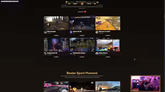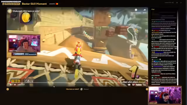 03:38:57Bevor der Streamer mit Keksi und Kenki „ARC Raiders“ spielt, wird beschlossen, sich die Stream Award Clips anzusehen. Der Titel des Streams wird entsprechend geändert. Es wird erwähnt, dass es einen „Streamer-Modus“ bei den Stream Awards gibt, der die Website im Vollbildmodus anzeigt und spezielle Slots für die Webcam bietet. Der Streamer stellt fest, dass er automatisch als Jury-Mitglied ausgewählt wurde und seine Einschätzung der Twitch-Szene für faire Ergebnisse gefragt ist. Er beginnt mit der Kategorie „Bester Rage-Moment“ und kommentiert verschiedene Clips, darunter einen von Mario Kart mit einer Doppel-Blauen Panzerung und einen Formel-1-Unfall. Er betont, dass ein Rage-Moment auch lustig sein kann und bevorzugt Clips, die humorvoll sind, wie den von Hadi. Die Kategorie „Bester Gaming-Moment“ wird ebenfalls betrachtet, wobei der Streamer die Auswahl der Clips kritisiert und sich fragt, ob es nicht eher um den „lustigsten Clip“ gehen sollte.