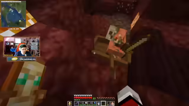 00:00:38Der Stream startet mit technischen Problemen, da Steam die Downloads stört und OBS nicht als Admin gestartet wurde. Hauptaugenmerk liegt auf der Erkundung im Nether-Bereich eines Minecraft-Servers. Es werden verschiedene Bauprojekte gezeigt, wie die Gestaltung eines Raumes mit Ranken und das Erstellen eines Nether-Portals. Die Funktionsweise des Portals und der darin mögliche Spawn von Schweinen wird eingehend diskutiert und mehrfach getestet, indem es aus- und wieder angemacht wird.