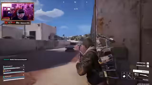 07:18:39Die Gruppe befindet sich in einer Belagerungssituation in einem Gebäude. Der Streamer betont die Notwendigkeit, vorsichtig vorzugehen und nach Fallen zu suchen, während er gleichzeitig auf den Abzug des Zuges wartet. Es kommt zu einem kritischen Moment, in dem ein Teammitglied niedergeschossen wird, was eine schnelle Rettung erfordert. Der Streamer plant eine Verteidigungsstrategie, indem er eine Laserfalle platziert, während seine Mitspieler versuchen, den Auszug sicher zu erreichen und den Gegnern auszuweichen.