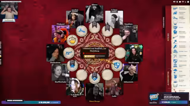 08:42:17Ein unerwarteter Disconnect unterbricht den Spielverlauf erheblich. Währenddessen versuchen die Spieler, das Geschehen zu verstehen und kommentieren die technische Instabilität. Ein Teilnehmer scheint das Spiel fortzusetzen, was für andere verwirrend ist. Die Streamer müssen die Situation klären, was zu einer kurzen Pause führt. Danach wird das Spiel normal fortgesetzt, aber die technische Verlässlichkeit bleibt ein großes Thema und beeinträchtigt die Spielfluss und den Informationsaustausch.