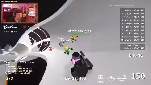 01:25:04Es wird über die Schwierigkeit gesprochen, an anderen Spielern vorbeizukommen und das Ziel zu erreichen. Der Streamer fragt nach der Serie 'Invincible' und äußert seine Meinung dazu. Es wird bemängelt, dass bei den aktuellen Maps die Zeiten der Map-Ersteller nicht angezeigt werden. Es wird über Among Us gesprochen und die Frage aufgeworfen, ob Kler heute dabei sein wird. Der Streamer äußert das Gefühl, dass die Planungen für die Woche schiefgelaufen sind. Es wird überlegt, ob etwas an den Einstellungen geändert werden muss, da andere Spieler nicht gesehen werden. Der Wallride wird als Stelle identifiziert, an der viel Zeit verloren geht. Es wird nach der optimalen Strategie für den Wallride gefragt. Der DM-Ordner des Streamers wird von Mods gelesen. Es wird über einen Clip gesprochen, in dem der Streamer Terz gekillt hat. Es wird festgestellt, dass man in einer bestimmten Stelle bremsen muss, was untypisch für Siebkist ist. Es wird über ein Kack-Symbol auf der Map diskutiert und der Map-Ersteller, der 'Poop-Sheriff' heißt.