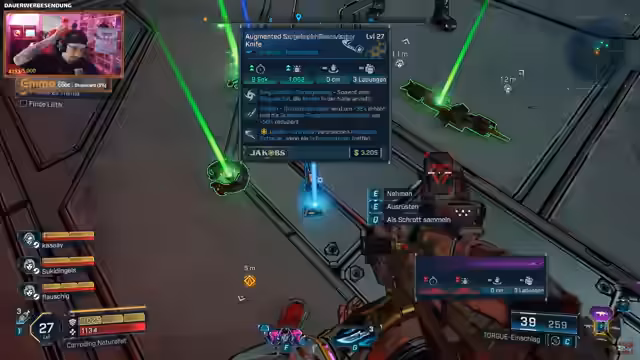 01:43:01Die Crew diskutiert über die Wirksamkeit von bestimmten Skills und Waffen gegen spezifische Gegner-Typen. Es wird festgestellt, dass Blitzwaffen ideal gegen Gegner mit Schilden sind, während Korrosionsschaden gegen Rüstung eingesetzt werden sollte. Besonders eine neu gefundene Waffe, ein Granatwerfer, der wie eine Shotgun funktioniert, erregt Aufmerksamkeit und wird getestet. Dazu kommt ein Addon, das bei jedem Treffer zusätzliche, teure Explosionen verursacht und sehr viel Schaden anrichtet.