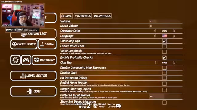 00:29:05Nach dem Start von Perfect Heist 2 werden die Einstellungen für die Runde besprochen. Es wird erklärt, dass NPC-Kills in Firefights erlaubt und Sprinting-Stamina aktiviert sind. Die Rundenzeit beträgt 480 Sekunden. Die Lebenspunkte der Rollen werden diskutiert: die Cops haben vier, die Robber nur zwei Leben, was bedeutet, dass ein Robber nach dem Tod nicht respawnen kann. Eine Map mit viel Geld wird ausgewählt, und der Streamer wird per Zufälligkeit zum Robber. Die Taktik für den Einbruch in die Bank wird geplant, wobei eine Rolle als Krypto-Spieler zur permanenten Ortung der Polizisten vorgesehen ist.
