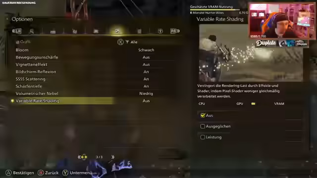 06:57:48Dhalucard überlegt, ob er einen echten Vulkan oder Garon machen soll, entscheidet sich aber für eine Mission. Es wird erklärt, wie man Vitalitätswesten findet. Dhalucard wird eingefroren und von einer Combo getroffen. Es wird angeboten, zusammen zu leveln und zu helfen, falls er es alleine nicht schafft. Ein Blitzkäfer und ein Finsternisnetz werden identifiziert. Vitalitäts-Wespen werden als grüne HP-Säcke in der Luft beschrieben. Dhalucard wird Opfer eines Angriffs und stellt fest, dass seine Ausrüstung nicht auf dem neuesten Stand ist. Er soll eine Blitz haben, um zu entspannen. Dhalucard startet einen Kampf gegen Anjanath und bittet um Bescheid, sobald dieser zum Campen sagt. Er ist im Kampf gegen eine Spinne und Anjanath gleichzeitig. Es wird bedauert, dass man nicht helfen kann. Dhalucard wird von einem Monster abgeworfen und ist frech. Olivia hilft im Kampf, der immer noch nicht fast vorbei ist. Es kommen kleine Ads hinzu. Die Angerrude ist wieder da. Ein geiler Effekt wird gelobt. Die Spinne ist mit Olivia abgehauen. Es wird ein Doppelzug gespielt. Es wird diskutiert, wie man einen Angriff abbricht. Dhalucard wird gerobbt und getroffen, obwohl er in der Luft war. Ein Nasenbein wird gefunden. Die zehn Minuten für das Mounten sind noch nicht wieder rum. Dhalucard hat den Bogen ausgerüstet und versteht es nicht. Einem Monster wird eine Wunde zugefügt, die es wieder wegmacht. Es wird ein Schockfalle platziert. Alles explodiert. Dhalucard weicht aus und kloppt auf den Kopf. Eine Quest wird freigeschaltet. Das Boss-Pattern ist nicht das Problem, sondern die Hitboxen. Es wird diskutiert, ob sich ein Monster geheilt hat.