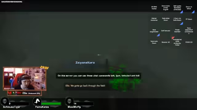 03:19:28Da die Teams offensichtlich Schwierigkeiten haben, greift der Streamer massiv als 'Backseat-Gamer' ein. Er gibt in Echtzeit Anweisungen für beide Teams, z.B. Survivors dazu anzuhalten, in Gruppen zu bleiben, Zombies aktiv zu bekämpfen und nicht nur zu rennen. Für die Infected empfiehlt er, koordinierte Angriffe zu starten und den Smoker effektiver einzusetzen. Diese direkte Hilfe wird offenbar benötigt, da die Spieler häufig grundlegende Fehler machen und Chancen nicht nutzen.