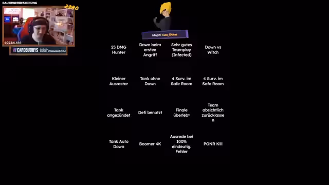 00:00:00Der Stream beginnt mit der Planung eines Left4Dead 2-Bingo-Spiels. Es werden verschiedene Bingo-Karten besprochen und die Schwierigkeit einzelner Herausforderungen wie '25 Schaden auf den Jäger' oder 'Tank ohne Kill' evaluiert. Dabei wird diskutiert, ob beide Teams dieselben Karten erhalten oder unterschiedliche, um den Spielspaß zu maximieren. Während der Planung erwähnt der Streamer auch die bevorstehende LAN-Party, auf der er eine separate Seepkist-Lobby für zwei Stunden mit der Community eröffnen wird. Zeitgleich werden technische Probleme am Server festgestellt, die eine 100%ige Tank-Konfiguration verhindern.