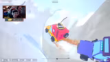 01:46:33Der Fokus verschiebt sich komplett auf den Speedrun des Mountain-DLCs. Das Duo kämpft sich durch verschiedene Hindernisse wie Stachel, Hammer und Tornado. Die Kommunikation ist entscheidend, da die Spieler sich gegenseitig ziehen und schieben müssen. Dabei wird viel Zeit durch technische Fehler und späte Starts verloren, was die Nerven belastet.