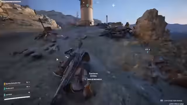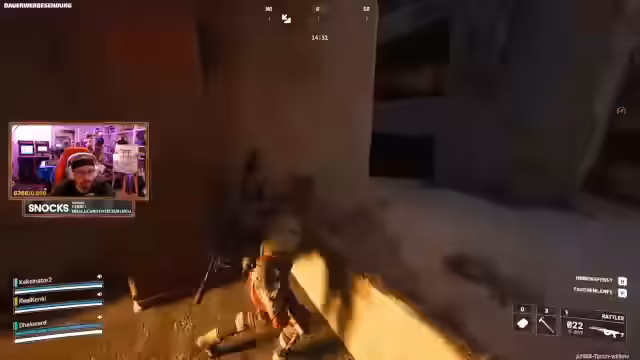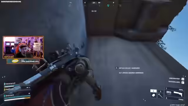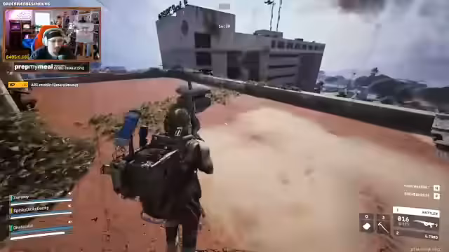 02:00:37Ein Spieler wurde für seinen 'Asi-Skin' kritisiert, da dieser Misstrauen bei anderen Spielern erweckt. Dies führte zu einer Anekdote, in der ein Spieler, der sich als 'friendly' ausgab und behauptete, keinen Loot zu haben, nach dem Kill jedoch mit 400 Saatgut voll beladen war. Es kam zu einem weiteren Kampf in der Nähe eines Bunkers, bei dem ein Spieler ein Geschütz nutzte, um einen Gegner zu überraschen und auszuschalten. Anschließend entwickelte sich ein langwieriger Kampf gegen einen 'Rocketeer', eine hartnäckige Drohne, die die Spieler über weite Strecken verfolgte und nur mit vereinten Kräften und viel Ausdauer besiegt werden konnte. Trotz der Schwierigkeiten konnte das Team den Rocketeer eliminieren und die Runde erfolgreich beenden.