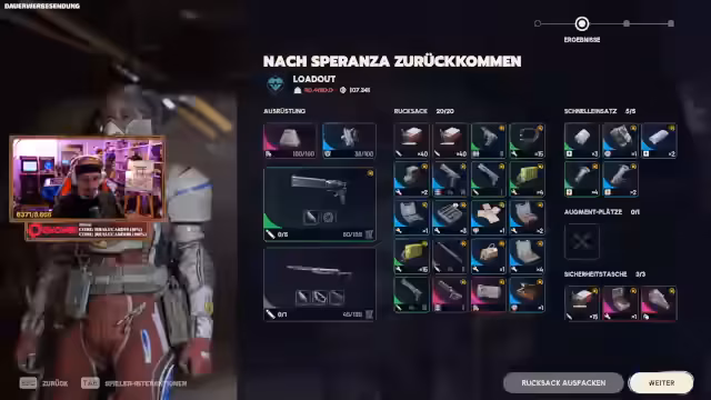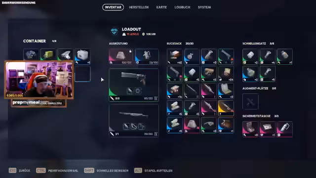 00:45:49Nach der Niederlage beschließen die Spieler, eine 'richtige', gekaufte Runde in Arc Raiders zu starten, bei der sie besseres Equipment mitnehmen. Der Streamer hat bereits wichtige Augment-Kits wie 'Beute Marke 3 Überleben' hergestellt und plant, eine Venator und eine Wolfpack mitzunehmen. Es wird über die bevorstehende Veröffentlichung neuer Waffen spekuliert, von denen mindestens zwei erwartet werden. Die Spieler sind gespannt, ob diese neuen Waffen die Meta verändern oder nur gegen bestimmte Gegnertypen effektiv sind. Während der Vorbereitungsphase wird der Fortschritt des Community-Events erneut überprüft, der inzwischen 8% erreicht hat, was als vielversprechend angesehen wird. Es wird auch über die Spielweise der Venator diskutiert, die schnell schießt und viel gespammt werden muss, um effektiv zu sein.