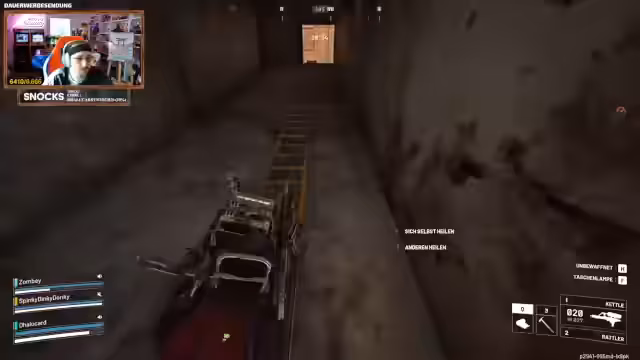 05:51:44Die Spieler werden von einem Telefonanruf unterbrochen, der sich als Jumpscare entpuppt. Sie stoßen auf eine neue Art von Zecke mit einem Gesicht, die sie bekämpfen müssen. Es wird diskutiert, wie man diese Zecke besiegt, indem man sie gegen die Wand schleudert. Die Spieler kämpfen mit verschiedenen Gegnern und versuchen, ihre Köpfe zu steuern, um Angriffe auszuführen. Es wird auch über den 'Hansmann' gesprochen, einen Gegner, der durch bestimmte Aktionen ausgelöst werden kann. Die Spieler versuchen, Leben zu finden und sich gegenseitig zu heilen, während sie die Karte erkunden und neue Herausforderungen meistern.