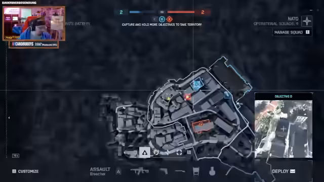 00:01:32Nach den technischen Anpassungen startet der Stream in Battlefield 6. Der Streamer beschreibt die Eindrücke des Spiels positiv, vergleicht es mit Day of Defeat und lobt insbesondere die Schusswaffe 'Pumpe', die viel Spaß mache. Er kritisiert aber auch die AK als 'bodenlos schlecht', da sie hohe Trefferzahl benötige. Spawnprobleme und Bugs werden ebenfalls angesprochen, wie die Deaktivierung des 'Saint Quarters'-Spots.