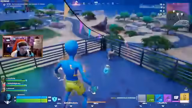 05:19:48Die Spieler entdecken eine geheime Disco mit einem Tanz-Emote und einem Heißluftballon. Es wird überlegt, ob der Ballon eine gute Fluchtmöglichkeit bietet, aber schnell festgestellt, dass er aus der Zone fliegt. Ein Spieler wird von einem Sniper getroffen, verliert aber keinen Schild, was als ungewöhnlich und heftig empfunden wird. Die Zone rückt immer näher, und die Spieler müssen schnell handeln. Ein Jetpack wird gefunden, und es wird diskutiert, ob man damit der Zone entkommen kann. Eine Zipline wird genutzt, um sich in Sicherheit zu bringen. Die Gruppe findet eine Banane und trifft Spinky wieder, der sich in der Nähe befindet.