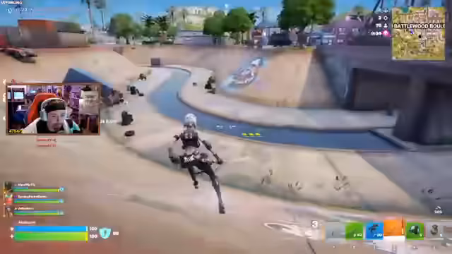 04:28:20Die Spieler landen am „Battlewood Boulevard“, einem neuen Ort, der mit „Tilted Towers“ verglichen wird. Ein Spieler äußert den Wunsch nach manuellen Tricks beim Surfen. Es wird über die Geschichte von Fortnite als Round-Based-Tower-Defense-Spiel gesprochen und ein Spieler erwähnt, zu den ersten fünf Spielern in Europa gehört zu haben, die ein eigenes Logo im Spiel erhielten. Die Fähigkeit eines Bosses, sich in „Beach Brutus“ zu verwandeln und passive Boni wie HP-Regeneration oder Klettern an Wänden zu erhalten, wird diskutiert. Die Möglichkeit, Granaten zu kochen und einen Wingsuit zu nutzen, wird ebenfalls erwähnt.