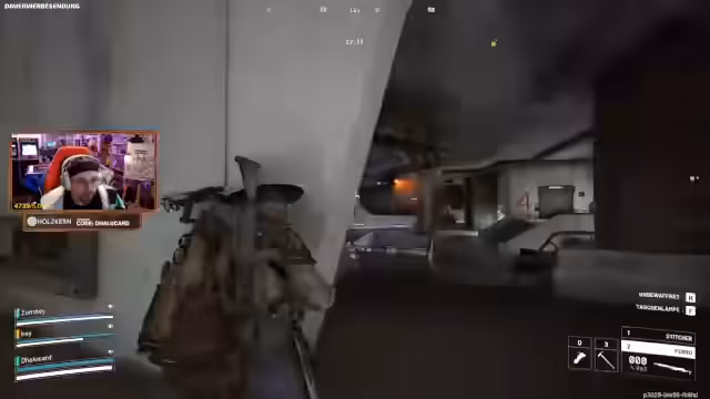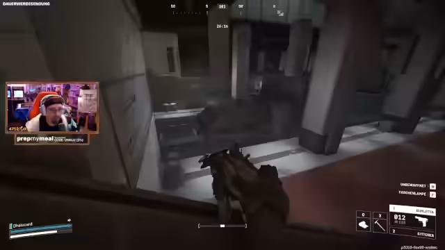 08:26:15Die Spieler spawnen in einer ungünstigen Position, können aber direkt in die Trench gelangen, wo immer die Best-Chain spawnt. Sie erwarten, auf dem Weg dorthin auf andere Spieler zu treffen, die ebenfalls das Bunker-Event machen wollen. Es wird gehofft, dass die Gegner sich auf die Bunker-Codes oder andere Missionen konzentrieren und nicht gezielt PvP suchen. Beim Erreichen des Bunkers kommt es zu einem unerwarteten Kampf mit einem anderen Team, das ebenfalls die Spotter ausschalten will. Die Spieler geraten unter Beschuss und müssen sich zurückziehen. Ein Spieler wird gedownt, und es wird festgestellt, dass das gegnerische Team dieselbe Ausrüstung und dieselben Ziele hatte.