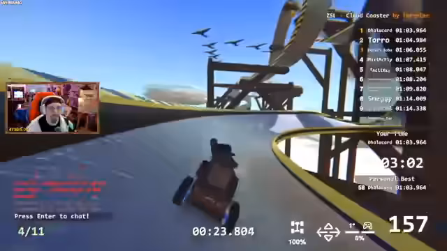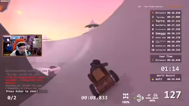02:00:31Inmitten der Zeepkist-Rennen kommt es zu einer lebhaften Diskussion über Achterbahnen. Die Meinungen in der Community gehen auseinander, von begeisterten Liebhabern bis hin zu Personen, die aufgrund von Übelkeit oder Migräne keine Achterbahnen mehr fahren können. Der Streamer selbst äußert sich kritisch gegenüber drehenden Karussells, während andere die Faszination für verschiedene Achterbahntypen teilen. Parallel dazu versuchen die Spieler, ihre Fahrstrategien in Zeepkist zu optimieren. Es wird über die Bedeutung präziser Lenkbewegungen und das Vermeiden von Reifenquietschen gesprochen, um keine Zeit zu verlieren. Die Spieler experimentieren mit verschiedenen Ansätzen, um schwierige Kurven und Wallrides zu meistern, wobei sie sich gegenseitig Tipps geben und Fehler analysieren, um die besten Zeiten zu erreichen.