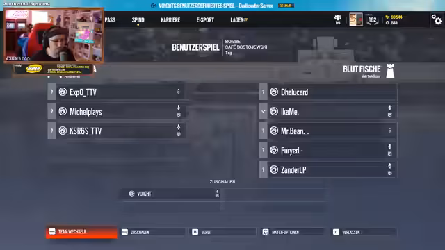 05:43:41Unmittelbar vor dem Start des Finales bereitet der Streamer sein Team auf das Match gegen das Team von KS vor. Er bittet alle Teammitglieder, das Spiel zu verlassen, um eine neue Lobby zu erstellen, da es einen Bug mit dem Rehost-System gibt. Nachdem das Team wieder beisammen ist, wird die Map 'Kaffee' ausgewählt. Die Wahl der Operatoren und das Ban-Phase werden besprochen, wobei der Fokus darauf liegt, starke Gegner-Operatoren wie Zero zu verbannen. Der Streamer motiviert sein Team und fordert die Zuschauer auf, Daumen zu drücken für das anstehende Finale.