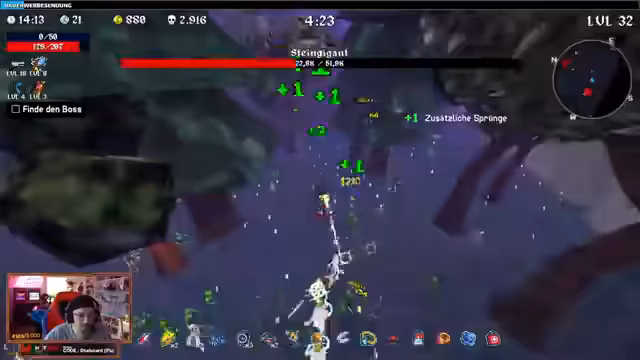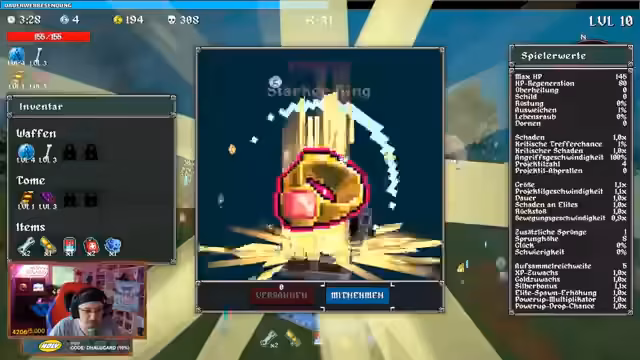 00:13:44Der Streamer beginnt mit seinem ersten Run von Megabonk und wählt den Fuchs als Charakter. Das Ziel ist es, einen Boss innerhalb von 10 Minuten zu besiegen. Die Anfangsphase wird als sehr langsam beschrieben, da die Gegner anfangs mit einem Schlag besiegt werden können und der Fortschritt nur schwer sichtbar ist. Der Fokus liegt zunächst auf dem Sammeln von Gold, um Kisten zu öffnen, und auf der Suche nach besseren Items wie dem Feuerelement, der Mehr-Angriffsgeschwindigkeit oder mehr Bewegungsgeschwindigkeit. Die Suche nach dem Boss-Portal wird als das schwierigste Element des Spiels identifiziert.