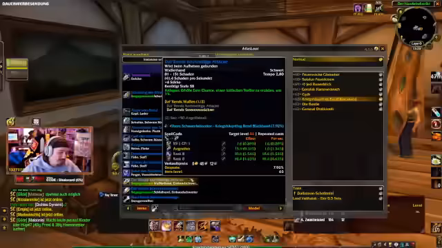 11:26:18Der Streamer erkundet den Dungeon Stratholme für die T0.5-Questreihe. Im Fokus steht der Endbosskampf, ein Doppelboss, der als besonders gefährlich gilt. Ein bestimmtes Item, das heilungsband, wird als sehr stark angesehen und wird von einem der Mitspieler gewünscht. Es werden auch spezifische Drops, wie bestimmte Schulterrüstungen, diskutiert und ihre taktische Bedeutung für den Set-Bonus erläutert.