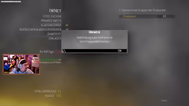 02:58:36Nach einer WoW-Session plant der Streamer einen gemeinsamen Spielabend mit Freunden für Call of Duty Modern Warfare 2. Die technischen Vorbereitungen gestalten sich jedoch schwierig, insbesondere bei Peter, der nicht den richtigen Router hat und keine Ports weiterleiten kann. Dies führt zu langen Verbindungsproblemen und Verzögerungen, bevor überhaupt eine Lobby gefunden werden kann.
