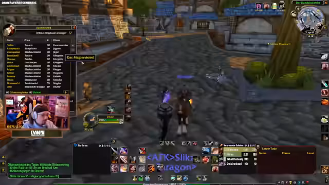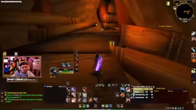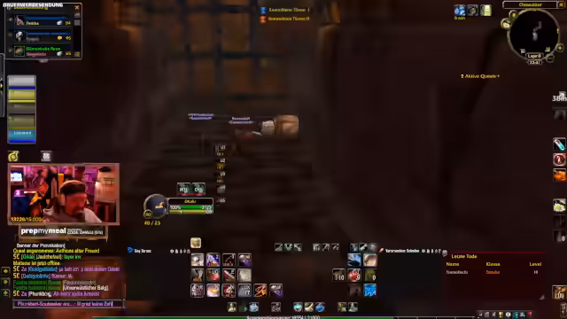 10:55:43Der Fokus verlagert sich auf die Organisation von World of Warcraft Dungeons. Konkret geht es um die 'Stratholme Living'-Quest, die als unmöglich für Solo-Spieler gilt. Die Suche nach einem 'Geschmeidigen unverwüstlichen Balk' steht im Mittelpunkt, da der Streamer dringend eine weitere Charge der Quest-Items benötigt, um sie abschließen zu können.