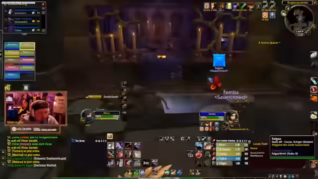 00:00:24Die Gruppe betritt Stratolym und ist sofort in den ersten Kämpfen gefordert. Es wird schnell klar, dass die Konstellation und das Equipment eine große Hürde darstellen. Der Tank Kani bekommt extrem viel Schaden, und die Aggro-Kontrolle ist ein Problem. Obwohl die Gruppe sehr vorsichtig agiert, führt ein Pull mit mehreren Geistern zu einem kritischen Moment. Die Heilung Phanasia ist überfordert, und Kani stirbt. Kurz darauf stirbt auch der Streamer, der in der Nähe war. Diese beiden Tode zeigen, dass die aktuelle Gruppe für den Anfang des Dungeons nicht geeignet ist, und es kommt zu einer Phase des Zögerns und der Unsicherheit.