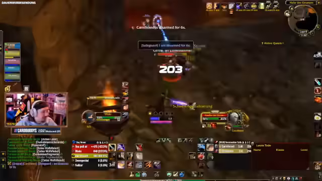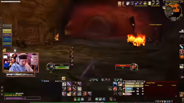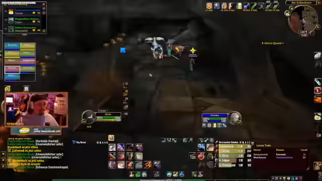 01:05:27Die Gruppe bewegt sich nun in die Blackrock Depths, um die Arena Runs zu absolvieren. Die Navigation wird von erfahrenen Spielern geleitet, die neue Skips und Wege erklären. Während der Runs kommt es zu einem tragikomischen Zwischenfall: Kay, ein Rougemitglied, stirbt auf eine besonders unglückliche Weise. Er wird durch ein Instanzportal in einen leeren Raum gepresst, ist aber noch technisch im Dungeon, was ihm den Rücken versperrt und ihn letztendlich tötet. Der Tod wird humorvoll als 'Bug' und 'legendarischer Kay-Moment' aufgenommen und erzeugt viel Gelächter im Chat.