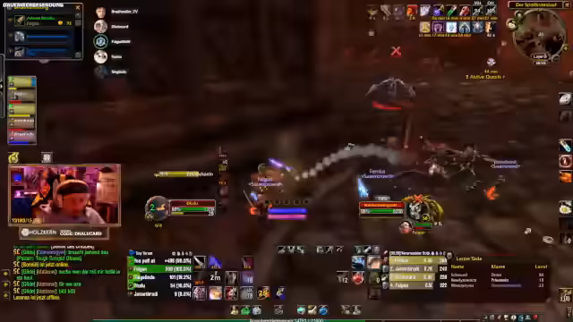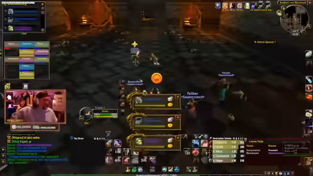 04:40:06Der Streamer berichtet, dass er die Instanz Strattholm mit einer schlecht ausgerüsteten Gruppe abgebrochen hat, um Todesfälle zu vermeiden. Sein Fokus liegt auf der T0.5-Quest, für die er einen Schurkengürtel benötigt. Die Gruppe ist neun Leute groß und plant für 16 Uhr Rant-Runs. Siggi wird dabei sein und der Streamer wird tanken.