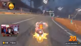 00:00:09Der Streamer beginnt mit einem Mario Kart K.O. Cup. Nach anfänglichen Schwierigkeiten, in denen er fast ausschied, schafft er es ins Top 8. Er kritisiert das Item-System, bei dem führende Spieler schwächere Items erhalten, und beschreibt den stressigen Rennverlauf, bei dem er mehrmals durch rote Panzer und blaue Shells bedroht wird. Das unvorhersehbare Verhalten der KI- und Spieleropponenten führt zu knappen Niederlagen und Platzierungen im Mittelfeld, was ihn frustriert.