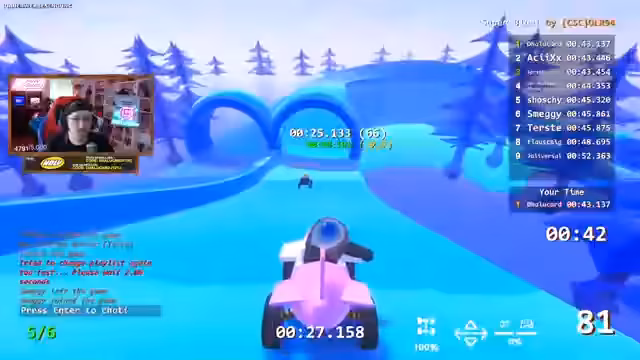 00:45:42Die Session endet abrupt mit einem technischen Defekt bei der Konsole. Anschließend wechselt der Streamer das Thema und spricht über die Netflix-Serie "Squid Game", die er fast zuende geschaut hat. Er empfiehlt die Serie "Devil's Plan" alsAlternative und äußert sich selbst nicht als großer Serien- oder Animefan, da dies zu viel Zeit in Anspruch nehme. Nach einem kurzen Unterhalt wechselt er wieder zu Zeepkist.
