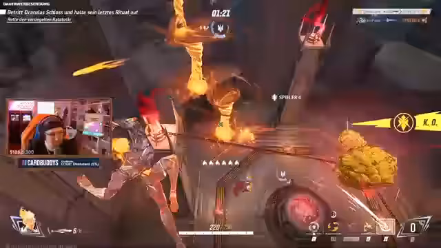 00:13:55Die erste Runde auf der Map Team-Up beginnt mit einem komplexen Escape-Room-ähnlichen Mechanismus. Das Team arbeitet zusammen, um Rätsel zu lösen. In den Kampfphasen nutzen die Spieler ihre Fähigkeiten. Human Torch erstellt Feuerflächen, während Storm Tornados erzeugt. Die Kombination der Fähigkeiten, insbesondere der Ults, wird als "geil" und "insane" beschrieben, da sie große Flächen Schaden anrichten. Ein Highlight ist, als gegnerische Charaktere in ihrer eigenen Unverwundbarkeit standen und der Schaden nach deren Ende explodierte.