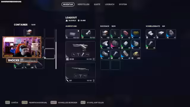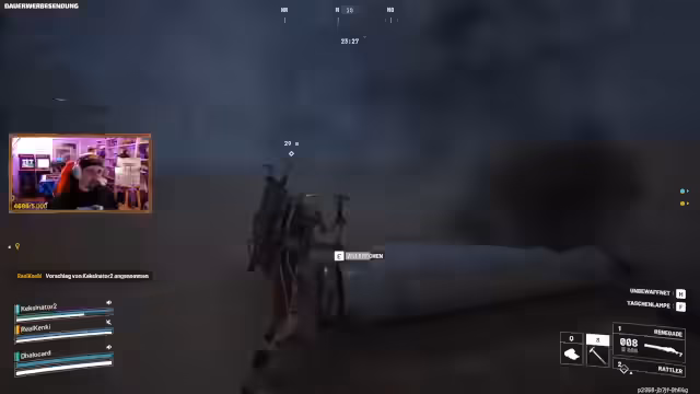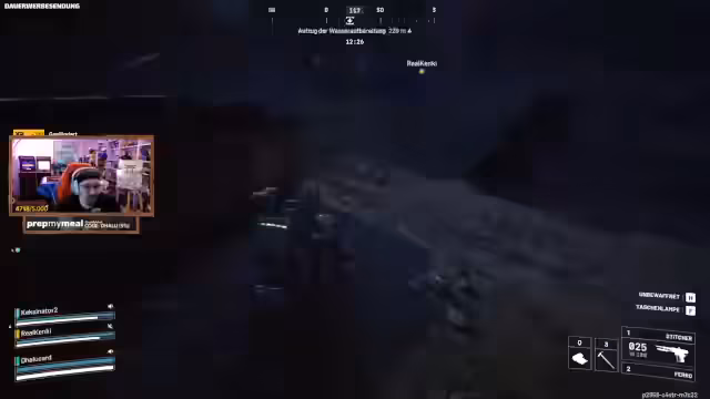 01:32:58Die Spieler kümmern sich um ihr Inventar und bereiten sich auf die nächste Mission vor. Ein Spieler überlegt, ob er seine 'Kettel 3' auf Stufe 4 aufrüsten soll, was sich lohnen könnte, je nach 'Fightback'. Es wird besprochen, welche Gegenstände im Koffer verstaut werden sollen, wobei eine 'Jupiter' für einen Spieler priorisiert wird. Die Gruppe plant, Drohnen mit der 'Jupiter' zu bekämpfen oder sie mit 'Wolfpacks' zu zerstören, wobei die Effektivität der 'Wolfpacks' noch getestet werden muss. Das Lager eines Spielers ist voll, was auf eine Ansammlung von Waffenaufsätzen und anderen Gegenständen hindeutet. Es werden 'Prozessoren' gesammelt, um ein 'Tactical MK3' herzustellen, und Heilmittel sowie 'Energie Clips' werden mitgenommen. Die Spieler hoffen, in den kommenden Wochen höhere 'Abenteurer'-Ränge zu erreichen. Es wird über die Möglichkeit diskutiert, Punkte neu zu verteilen, was jedoch nicht sicher ist. Die Gruppe überlegt, ob sie einen großen Turm besteigen sollen, um eine bessere Übersicht zu erhalten, aber das Risiko, Spieler anzulocken, ist hoch. Die Spieler werfen 'Bullshit' (vermutlich eine Art Köder oder Ablenkung) und sammeln Punkte, wobei die Effektivität der 'Wolfpacks' im Vergleich zu früheren Wochen geringer ausfällt. Die Punkteskala scheint sich geändert zu haben, und die Spieler müssen ihre Strategie anpassen, um maximale Punkte zu erzielen.