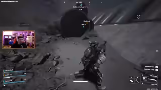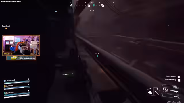 04:48:44Die Spieler stehen vor Herausforderungen in Arc Raiders, insbesondere durch Blitze, die Spieler treffen können, während sie Aktionen ausführen. Es wird die Frustration über den 'Rocketeer' geäußert, der als der nervigste Gegner im Spiel beschrieben wird, da er unermüdlich angreift und die Spieler verfolgt, selbst über große Entfernungen auf der Karte. Die Strategie, Aggro zu verlieren, um Proben zu öffnen, wird diskutiert. Die Spieler versuchen, sich zu verstecken und den Rocketeer abzulenken, um ihre Ziele zu erreichen. Trotz der Schwierigkeiten und des Zeitverlusts durch den Rocketeer sind die Spieler motiviert, weitere Proben zu sammeln, um eine hohe Punktzahl zu erreichen.